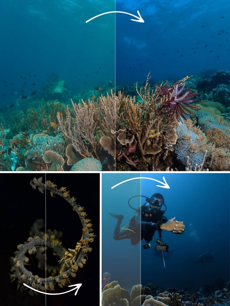 This is a comparison before and after applying the DIVE & CAPTURE presets.