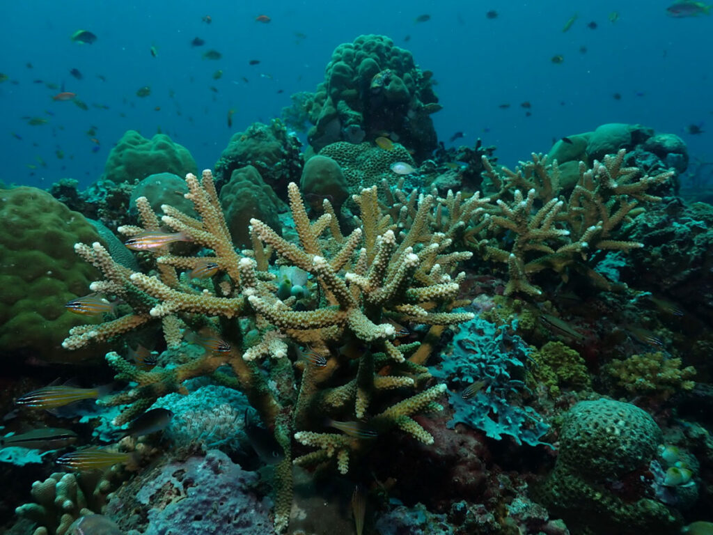Depict coral landscapes in bright and vivid colours, neutral tones or retro-stylised looks.